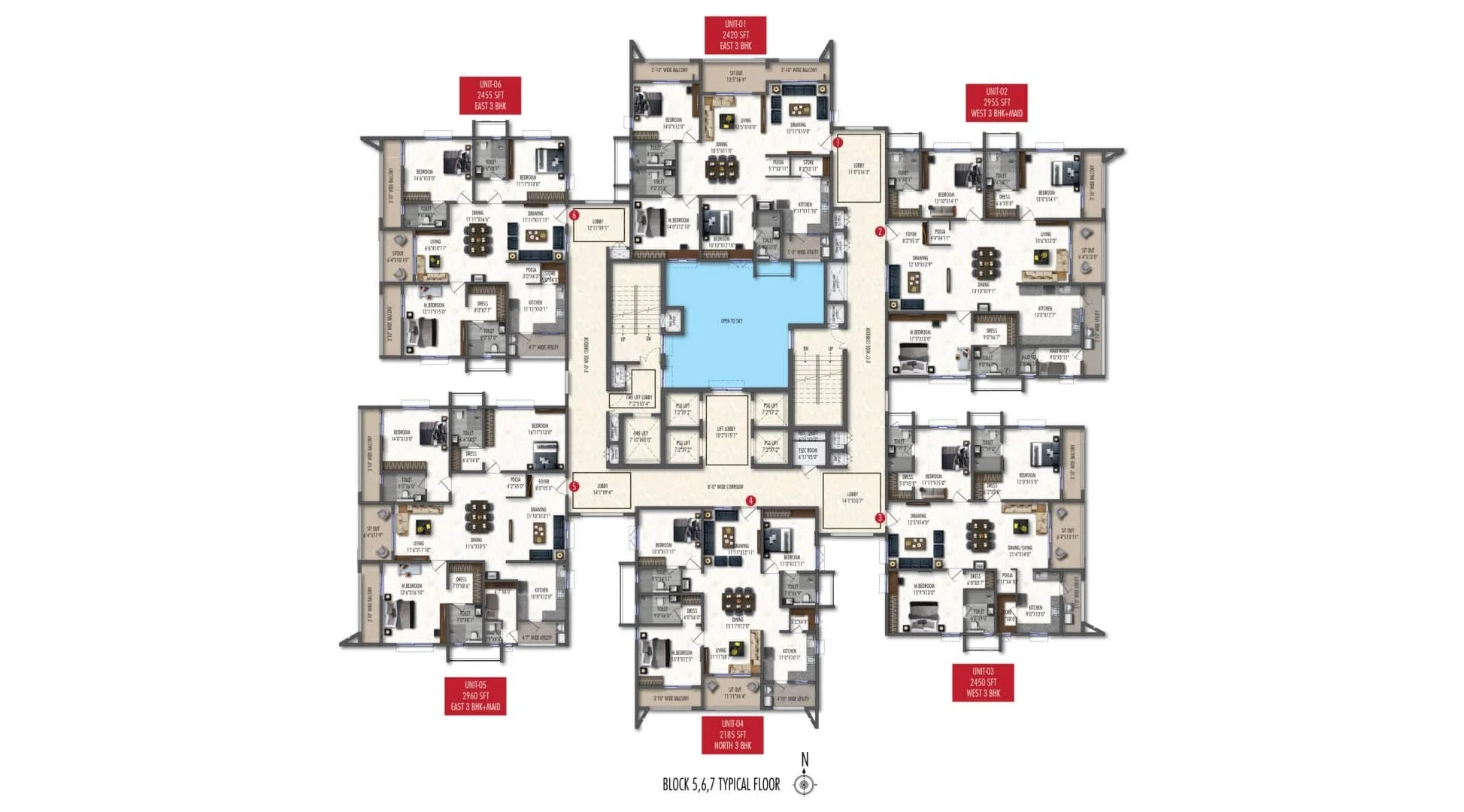2185 sft to 3490 sft / 3 BHK